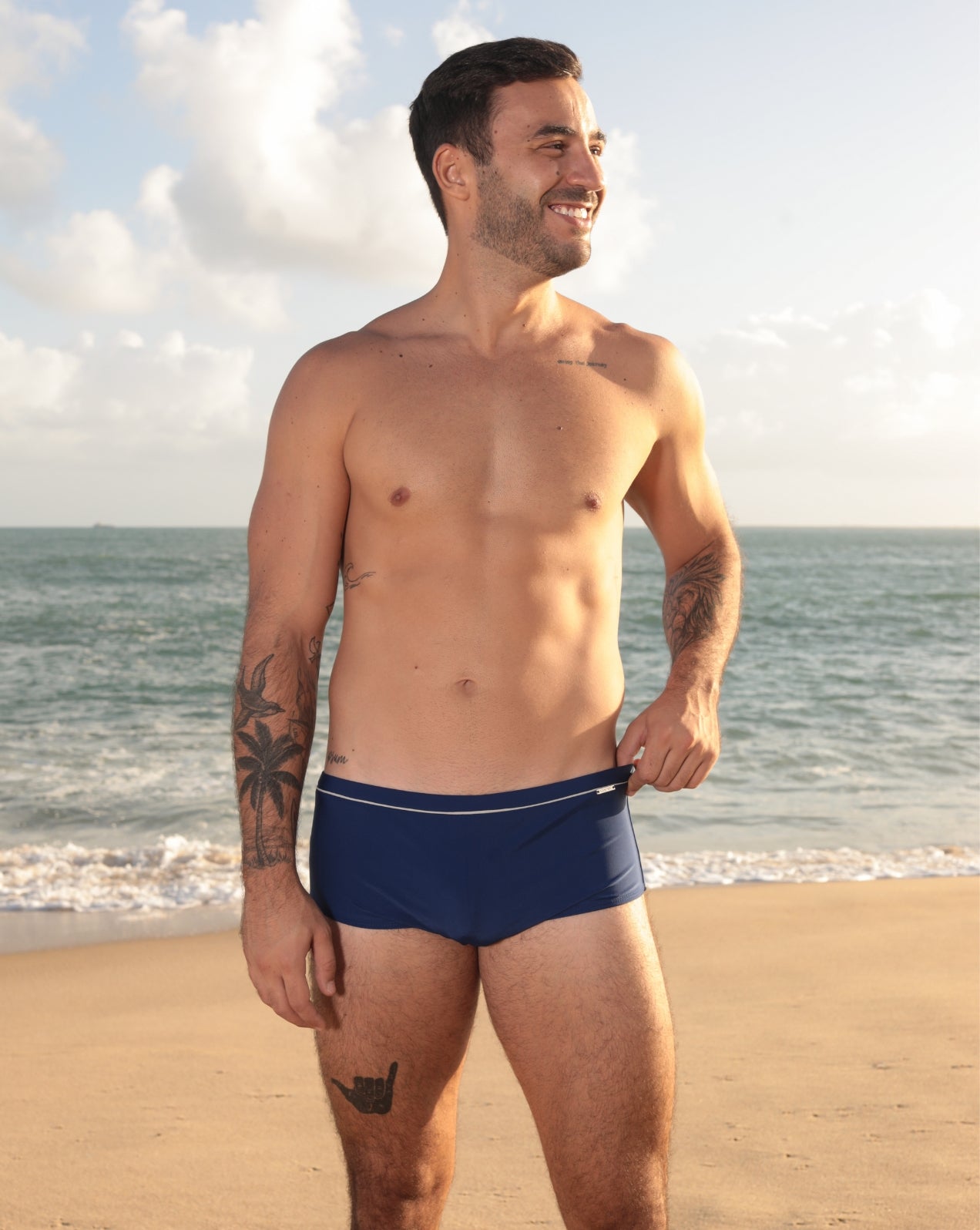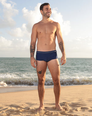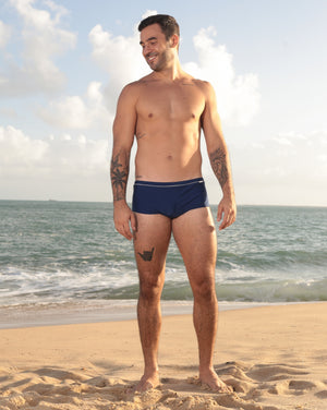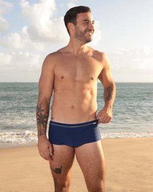 Sunga azul marinho com listra off-white