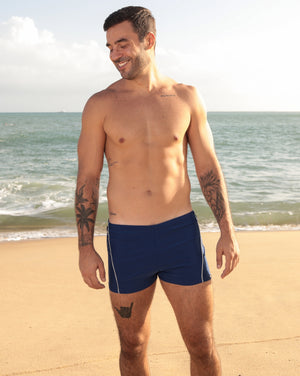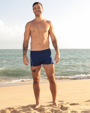 Sunga boxer azul marinho com listra lateral off-white